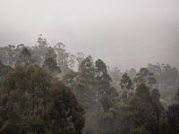 Zo hoog dat de toppen van de bomen in de wolken zijn, wat een erg dramatisch gevoel geeft.