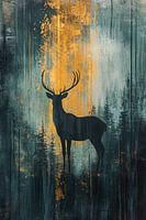 Dit prachtige ontwerp toont een sierlijke silhouet van een hert in een betoverende, abstracte setting. Het gouden accent contrasteert prachtig met de donkere, mystieke achtergrond in blauw- en grijstonen. Ideaal voor liefhebbers van natuur en kunst, voegt dit schilderij een vleugje elegantie toe aan elke ruimte. Het ontwerp straalt een serene maar krachtige uitstraling uit en is perfect om een moderne woonkamer of hal mee te decoreren. Met zijn unieke combinatie van abstractie en natuurthema is dit een eyecatcher die een gevoel van rust en verwondering oproept. Een subtiele verwijzing naar de schoonheid van de wildernis in een hedendaagse stijl.