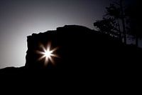 DE zon schijnt door een opening van een door erosie aangetaste rots in Bryce Canyon National Park
