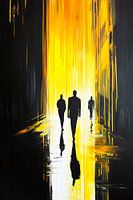 In het midden van een stralende, gouden gang komen silhouetfiguren tevoorschijn uit de duisternis. Het schrille contrast tussen licht en schaduw creëert een bijna mystieke sfeer. Perfect voor een woonkamer om spannende gesprekken op gang te brengen en de verbeelding van de kijker te stimuleren. Ideaal om een indrukwekkende sfeer te…
