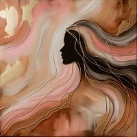 Laat u omhullen door de mysterie en gratie van dit abstracte olieverfwerk, waarin een vrouwelijk silhouet in warme tinten van bruin, roze en goud is weergegeven. De vloeiende vormen van de figuur gaan moeiteloos op in de achtergrond, waarbij diepe bruintinten een warme en gelaagde sfeer creëren. Zachte roze nuances brengen een vleugje vrouwelijkheid, terwijl subtiele gouden details het geheel doen oplichten en tot leven brengen. Dit moderne, dromerige werk straalt elegantie uit en is een perfecte aanvulling voor wie zijn interieur wil verrijken met een tijdloze en symbolische creatie.