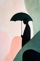 Silhouet met paraplu in een kleurenspel van Poster Art Shop