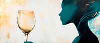Een elegant silhouet dat perfect harmonieert met een fijn wijnglas wekt de indruk van verwennerij en een verfijnde levensstijl. De zachte kleurschakeringen en de gestileerde illustratie creëren een sfeer van rust en ontspanning. Ideaal voor in de woonkamer, waar het gesprekken stimuleert en een gevoel van gezelligheid verspreidt.