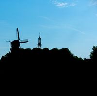 Silhouet van het Groninger dorp Spijk, met molen en kerktoren.