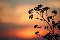 Silhouet van bloem bij zonsondergang van Cor de Hamer