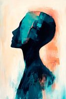 Een fascinerend silhouet dat bekoort door krachtige kleurcontrasten en gestileerde contouren. De harmonieuze combinatie van koele blauwe en warme tinten creëert een bedachtzame sfeer. Ideaal voor een woonkamer of kantoor waar inspiratie en creativiteit kunnen stromen. Dit kunstwerk zet aan tot dromen en nadenken.