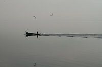 Koop de foto Silhouet van een visser van Abra van Vossen op canvas, aluminium dibond, (ingelijste) fotoprint, behang en ArtFrame, op maat geprint in Fine-Art kwaliteit.