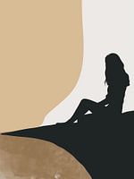 Silhouet van een vrouw zittend in de berg, moderne minimale neutrale muurkunst