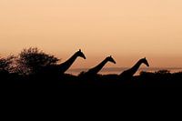 Koop de foto Silhouet van giraffen van Gerard Smit als print op canvas, aluminium dibond, (ingelijste) fotoprint, behang en ArtFrame. Voor jou op maat geprint in Fine-Art kwaliteit.