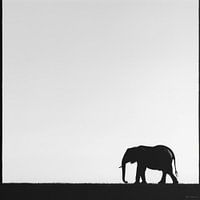 Deze indrukwekkende zwart-witfoto toont het silhouet van een olifant die vredig ronddwaalt in een uitgestrekt landschap. De minimalistische compositie en het scherpe contrast tussen de olifant en de lichtgekleurde achtergrond creëren een gevoel van rust en grootsheid. Ideaal voor natuurliefhebbers en degenen die de majestueuze aanwezigheid en stille kracht van het wild willen vastleggen in hun interieur. Dit kunstwerk brengt tijdloze elegantie en een diepe verbondenheid met de natuur in elke kamer.