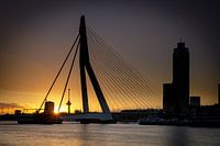 De meest fotogenieke brug van Nederland: de Erasmusbrug in Rotterdam. Op het moment dat de zon onder ging piepte hij nog meer tussen de brug door waardoor je een mooi silhouette krijgt.