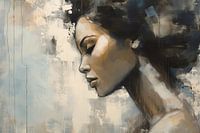 Details: vrouw, modern, portret, aardetinten, silhouette, stilte, elegantie, mysterieus, bruin, zwart, wit, beige