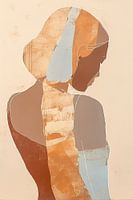 Silhouette Serenity - Dit abstracte vrouwen schilderij toont overlappende silhouetten met zachte, vloeiende lijnen en een pallet van aardetinten die een gevoel van rust en reflectie uitstralen.
