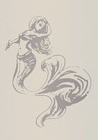 Prachige illustratie van een zeemeermin met een sierlijke staart. In beige en taupe tinten.