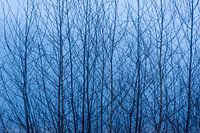Silhouette van Berkenbomen tijdens ochtendmist in een natuurgebied in Winterswijk, Achterhoek.