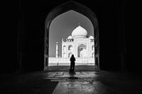Silhouette van vrouw in poort tegenover de Taj Mahal in Agra India. Wout Kok One2expose.