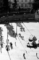 Deze foto maakte ik tijdens een citytrip naar Rome, toch wel een van de bijzonderste oude steden van Europa. Zoveel geschiedenis, prachtig weer en natuurlijk het lekkere Italiaanse eten. Op dit beeld is het bekende Piazza del Popolo te zien, hier afgebeeld in zwart-wit waardoor de wandelende mensen en de schaduwen goed tot hun recht…