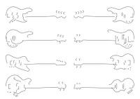 Een collectie van silhouetten van verschillende types bas gitaren in een minimalistisch lijnen ontwerp. Bevat: Jazz, Precision, Sterling / Stingray, Rickenbacker, Thunderbird, Violin, Hollow Body (Jack Casady) en SG type bas bodies.