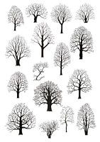 Silhouetten van bomen in de winter. Illustraties Jasper de Ruiter.