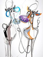 Lijntekening illustratie met twee grappige koeien.