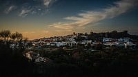 Uitzicht over de groene vallei naar Silves stad en historisch kasteel op de heuvel bij zonsondergang in Portugal. Foto: Tony Taylor