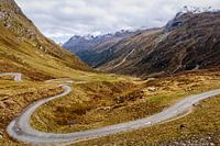Silvretta Alpenstrasse in de afdaling van het gelijknamige stuwmeer naar Ischgl in het Montafon gebied van de Oostenrijkse Alpen.