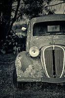 Deze oude Simca 8 staat ergens in Frankrijk in de Dordogne als een soort ornament te pronken op het terrein van een winkeltje.
