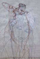 De zwarte draad speelt de hoofdrol in mijn werken, geïnspireerd op de momenten van het leven, ik hoop de toeschouwer een moment of gevoel van herkenning te geven, een innerlijke beleving, iets waardoor je gaat dwalen in je eigen gedachten. Mijn losse draden staan voor groei & verandering. Deze bewegen mee met warmte & wind & zijn naar eigen gevoel te leggen op het doek. Ik hou van puur, materie & textuur.