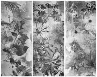 Schilderachtige bloemen foto in Zwartwit. Geraniums, mimosa en bougainville bloemen . Zeer geschikt ook als behang en makkelijk inpasbaar in de ruimte.