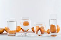 Sinaasappelen in verschillende vormen door verschillende glazen