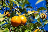 Rijpe sinaasappels op een boom met bokeh