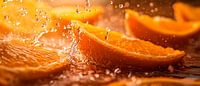 Plakjes vers sprankelende sinaasappel dansen in het zonlicht en creëren een levendig schouwspel van sappige frisheid en sprankelend water. De warme kleurschakeringen en levendige textuur roepen direct levenslust op. Dit kunstwerk is perfect voor in de keuken, waar het de zintuigen prikkelt en een uitnodigende sfeer creëert.