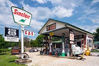 Sinclair garage met service station in Paris Springs op de route 66. Eigenaar is Gay Parita.
