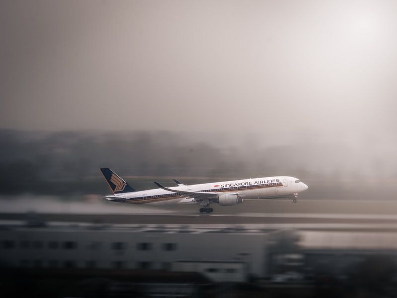 De Airbus A350-900, voor mij persoonlijk een van de mooiste vliegtuigen ooit gebouwd, zweeft hier elegant de lucht in. Genomen tijdens de start vanaf baan 26L op de luchthaven van München.