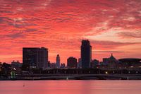Vuurrode zonsondergang achter de skyline van Singapore.
