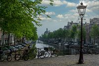 Dit werk toont de Singel gezien vanaf de Torensluis in hartje Amsterdam. Op de voorgrond een ouderwetse straatlantaarn, gevold door een brugleuning vol met geparkeerde fietsen. Op de achtergrond is de beroemde Koepelkerk zichtbaar. De lente frisse bladeren van de bomen aan de gracht completeren het beeld.