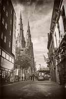 De Sint-Catharinakerk in Eindhoven op het Catharinaplein en aan de voet van Stratumseind. Een ander werk in mijn shop toont alleen de twee torens die boven Stratumseind uitsteken. Hier is wat meer te zien van deze neogotische kerk uit 1867.