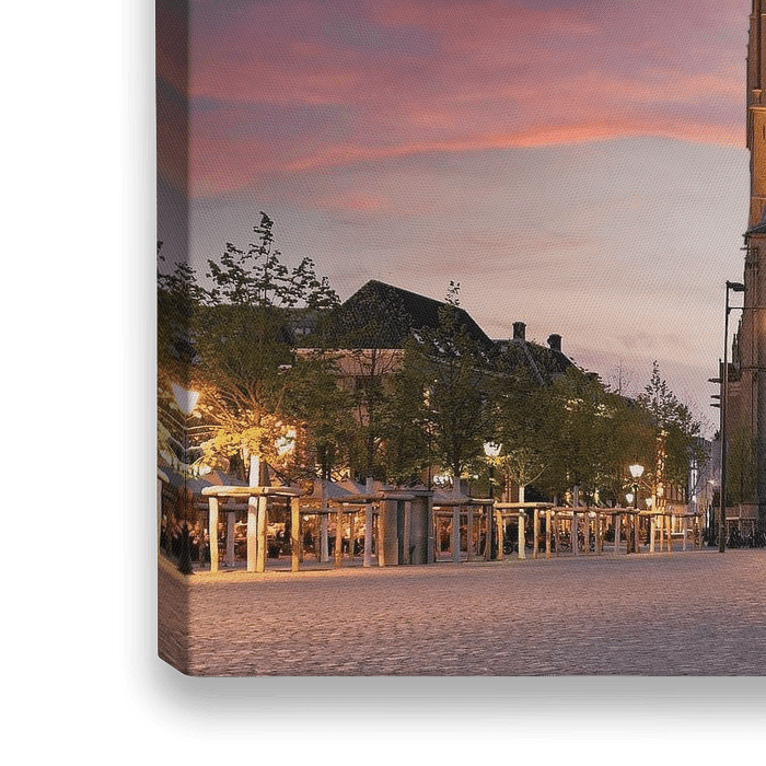 Deze foto toont de Sint-Jan's Kathedraal in 's-Hertogenbosch, badend in een betoverende gloed van blauw en rood, terwijl donkere wolken zich dreigend boven de hemel samenpakken. De majestueuze kathedraal rijst op tegen de dramatische achtergrond, haar gotische architectuur versterkt door het contrast tussen het oplichtende firmament en de duistere wolken. Het diepe blauw en het vurige rood van de lucht vormen een krachtige tegenstelling die de spirituele en mystieke sfeer van de locatie versterkt. "Hemelse Tegenstelling" is een visueel meesterwerk dat de toeschouwer uitnodigt om de pracht en het mysterie van het moment te omarmen.