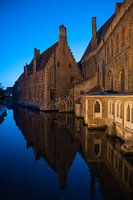 Brugge (Bruges) Belgium. Sint-Jans Hospitaal, St. Johns Hospital reflected in the waters of a canal.