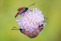 Drie sint jansvlinders bij elkaar op bloeiend beemdkroon.