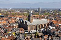 Deze bijzondere opname toont de Sint-Joriskerk in haar volle glorie, omringd door het historische centrum van Amersfoort. Vanuit dit verhoogde perspectief ontvouwt zich een prachtig overzicht van de middeleeuwse stad, waarbij de oude stadsstructuur nog duidelijk herkenbaar is. De kerk vormt het visuele ankerpunt in een zee van karakteristieke daken, pleinen en straten die getuigen van eeuwen stadsontwikkeling. De foto is gemaakt onder ideale lichtomstandigheden, waardoor de warme kleuren en texturen van de gebouwen extra goed tot hun recht komen. Door de hoogte van de opname wordt niet alleen de architectuur zichtbaar, maar ook de samenhang tussen de verschillende elementen van de stad. Dit soort beelden benadrukken hoe krachtig compositie, timing en perspectief samenwerken om een verhaal te vertellen. Het resultaat is een visuele reis naar het hart van Amersfoort, waar geschiedenis en hedendaags leven elkaar ontmoeten.