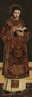 Dit avondvullende portret van de heilige Julianus van Toledo maakte oorspronkelijk deel uit van een altaarstuk en zou een centrale rol hebben gespeeld in de katholieke ceremonies in het begin van het zestiende-eeuwse Spanje. De behandeling van het kerkelijk kleed is het meest opvallende kenmerk van deze olieverf op paneel. Het onthult het Spaanse plezier in decoratieve patronen en benadrukt uitgebreide schildertechnieken zoals estofado, die gebruikt worden om de patronen en texturen van kostbare geweven textiel te imiteren. De heilige draagt een dalmatische of lange tuniek met wijde mouwen, met een geborduurde rand van verheven gouden letters, over een witte alb of jurk. Binnenin het schilderij identificeert de heilige met de halo-inscriptie "de heilige Julianus de diaken" hem als de bekende theoloog en schrijver uit de zevende eeuw, die later de aartsbisschop van Toledo werd. Hier staat Julianus met het gereedschap van zijn vak in de hand: een boek en een schrijfstift.