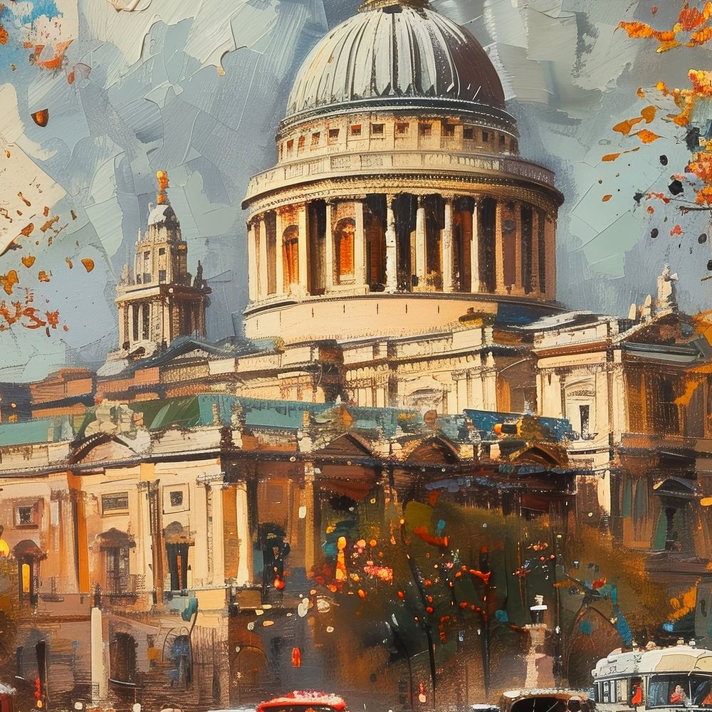 Gezicht op Saint Paul's Cathedral in Londen in de stijl van een abstract schilderij.