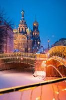 De Kerk van de Verlosser op het Bloed, ook wel Kerk van de Wederopstanding van Jezus Christus genoemd op een winterse ochtend in de sneeuw in St. Petersburg.