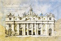 Architectuurschets uit een serie tekeningen van de mooiste en beroemdste gebouwen ter wereld. Gemaakt met potlood en aquarel op papier.