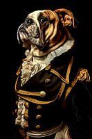 Deze Engelse Bulldog heeft zich vermomd als veldheer ten tijde van de Amerikaanse onafhankelijks oorlog. Deze oorlog resulteerde uiteindelijke in de onafhankelijkheid van de Verenigde Staten. Daar zal deze Bulldog niets van geweten hebben. Door woorden zo te plaatsen in een leesbare volgorde ontstaat een beeld dat niet misstaat als werk aan de muur van een statige villa, ingericht met donkere lambrisering langs de muren en vorsten en veldheren daarboven. Allen met een zelfverzekerde blik in hun ogen en na later zou blijken een abrupt einde van het hondenleven van Sir Bull.
