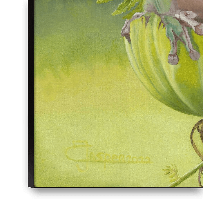 In Sir Croaks-a-Lot stapt Carla Jaspers brutaal een wereld binnen van eigenzinnigheid en stralend realisme. Dit levendige werk, geschilderd bij Tonkinson Art Masters, toont een charmante boomkikker die zelfverzekerd bovenop een opzwellende zaaddoos zit, omringd door weelderige varens die zijn weergegeven met Carla's kenmerkende aandacht…