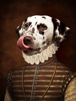 Portret van een dalmatiër met een flinke lap tong, in de stijl van de oude meesters.