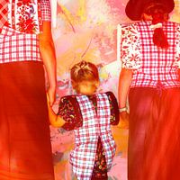 De warmte, de liefde, die er tussen hen is komt mooi tot uiting door de warme rode kleur.