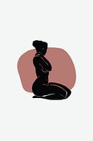 Op dit abstracte schilderij zie je de zijkant van het vrouwelijk lichaam. Dit abstracte schilderij heeft een moderne look met de neutrale kleuren op een witte achtergrond.